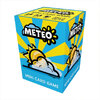 In Meteo, players try to find the best weather conditions for last-minute holidays.+ + + + + + + + + + + + + To set up, lay out six face-up weather cards (worth +2 to -2), then place one of six color cards at random face down under each weather card. Each player secretly looks at one face-down card.