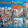 The sixth edition of the Carcassonne Big Box contains the Carcassonne base game, the Inns & Cathedrals and Traders & Builders expansions, the mini-expansions The River and The Abbot now included with the base game, and the six mini-expansions from 2012: Carcassonne: The Flying Machines, Carcassonne: The Messengers, Carcassonne: The Ferries, Carcassonne: The Gold Mines, Carcassonne: Mage & Witch, and Carcassonne: The Robbers; these six each include one of the six tiles for the Carcassonne: The Corn Circles II/Crop Circles II mini expansion.
